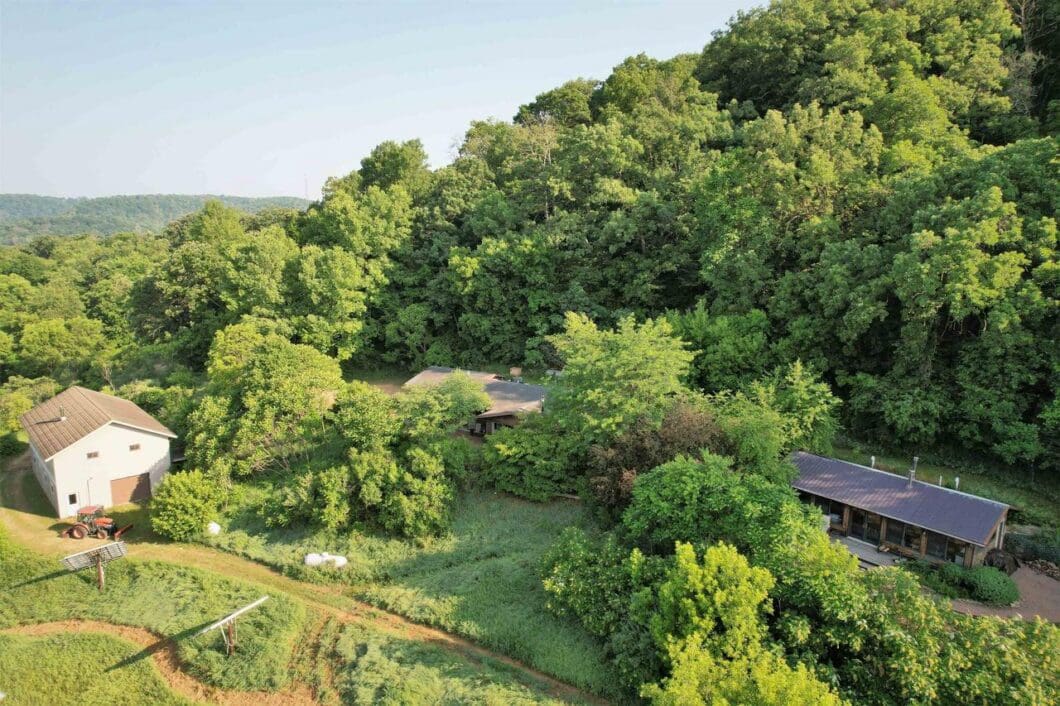 Showings will begin 6/24/2023. A 40+/- acre hidden Driftless region gem is one way to describe this Vernon county property located between La Farge and Viola. Privacy, solitude and amazing views are some of the qualities unique to this well planned south facing one level 3 bedroom 2 bath bermed home with adjacent stunning well appointed large summer kitchen with root cellar. Just below the home is an equally impressive drive through shop building with roll up doors and a spacious overhead studio/office space. Another main feature is the relocated historic log home resting on a poured concrete full basement. Below the buildings lies an expansive open grass meadow which is certifiable organic. Old growth forested ridge with trail overlooks the Kickapoo valley.